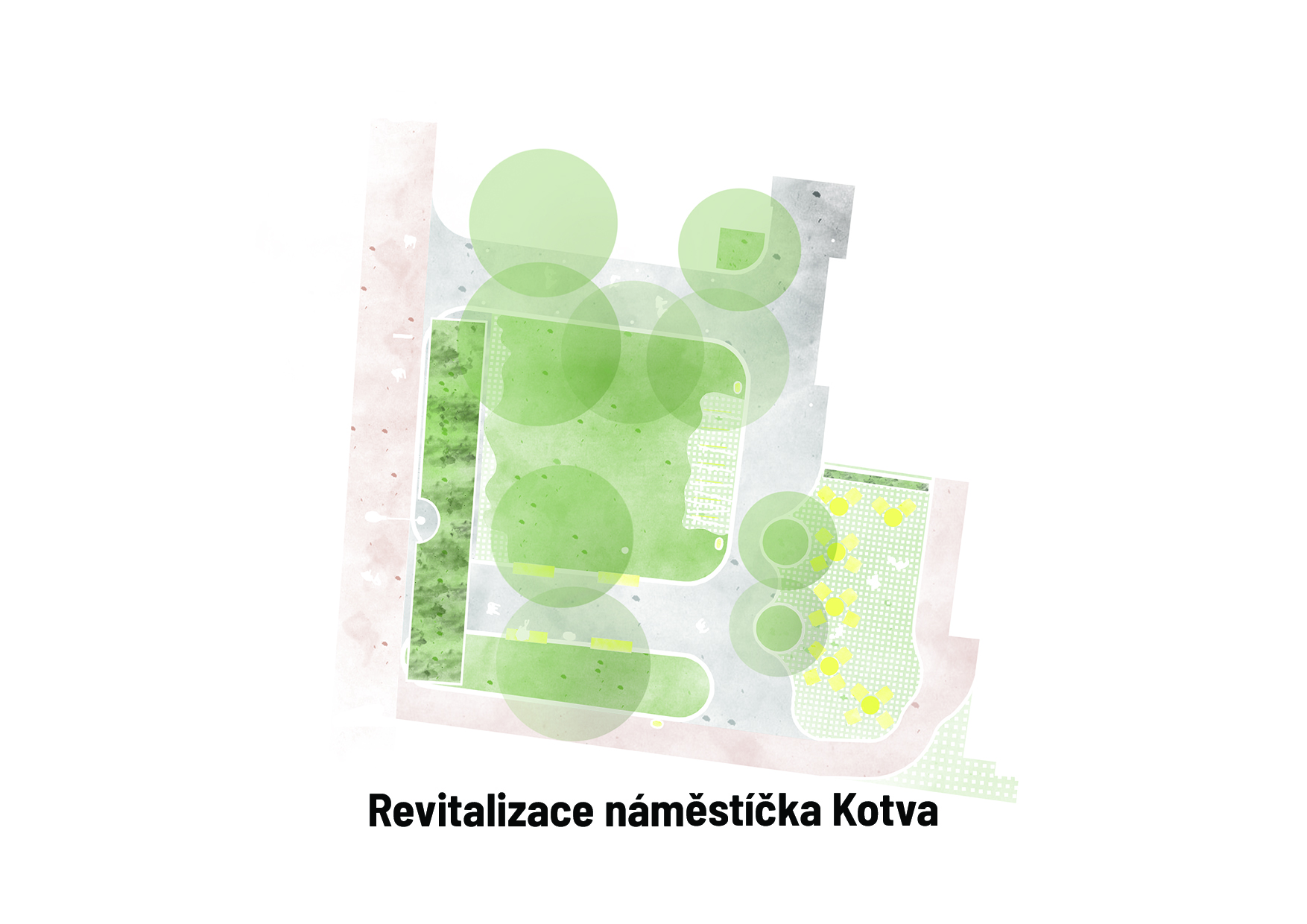 Navrhujeme proto revitalizaci prostoru. Konkrétně se jedná o zachování komunikační sítě náměstíčka, dotvoření zelených ploch, sjednocení materiálu a mobiliáře, výměna a rozšíření přístřešku zastávky MHD, vytvoření relaxační zóny ve východní části náměstíčka, přemístění a navýšení kapacity kolostavu a vytvoření prostoru pro všechny, kdo na místo denně přicházejí – ať už jako návštěvníci kina nebo cestující MHD.