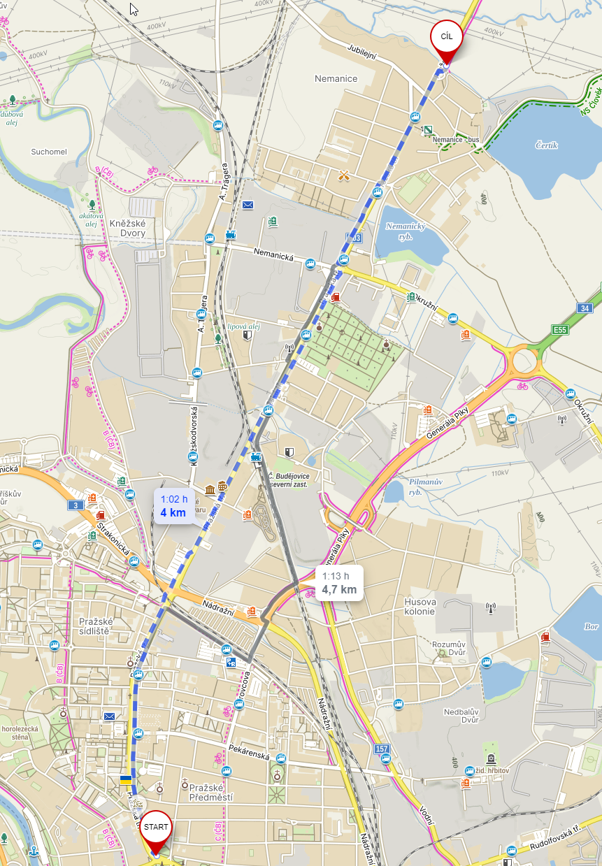 Navrhuji souvislý cyklopruh na Pražské třídě v úseku Mariánské náměstí – konec Nemanic. Vzniklo by tak bezpečné cyklistické propojení centra města a obce Borek. Město sice má cyklostezky kolem řeky, ty jsou ale spíše turistické a ne vždy mohou být využity pro každodenní dojíždění například do práce. Obrovský potenciál cyklodopravy v Českých Budějovicích zústává dlouhodobě nenaplněn. Více cykloprůhů může pomoci zklidnit dopravu ve městě. Osobně postrádám bezpečnou trasu v tomto úseku především pro každodenní dojíždění pro zaměstnance firem Bosch, Budvar, Motor. Při každodenním dojíždění do práce se cítím na Pražské ohrožen. Alternativou je v současné době pouze nesouvislá a výrazně delší trasa při využítí cyklostezky kolem řeky, nebo doprava do práce autem, čímž se doprava v ČB ještě více zahušťuje. Šířka stávajících pruhů pro auta na Pražské třídě se mi zdá dostatečná pro to, aby dva pruhy mohly být zúženy tak, aby vznikl bezpečný prostor pro cyklisty.