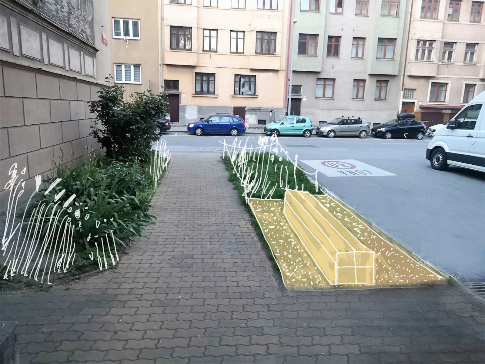 Předmětem projektu je založení dvou extenzivních trvalkových záhonů u sgrafita umělce Jana Hally v Havlíčkově ulici a umístění lavičky s odpadkovým košem.