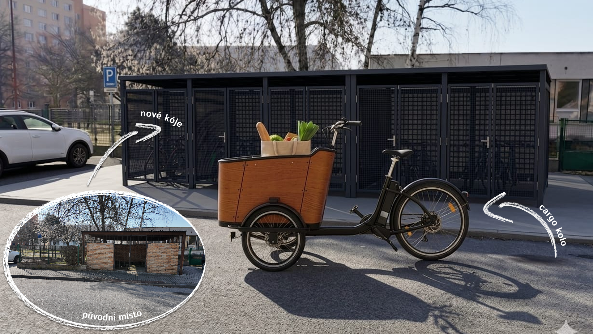 Proměňme starý kontejnerový přístřešek v moderní cyklokóje – bezpečné zázemí pro cargo kola, šikovné městské pomocníky.