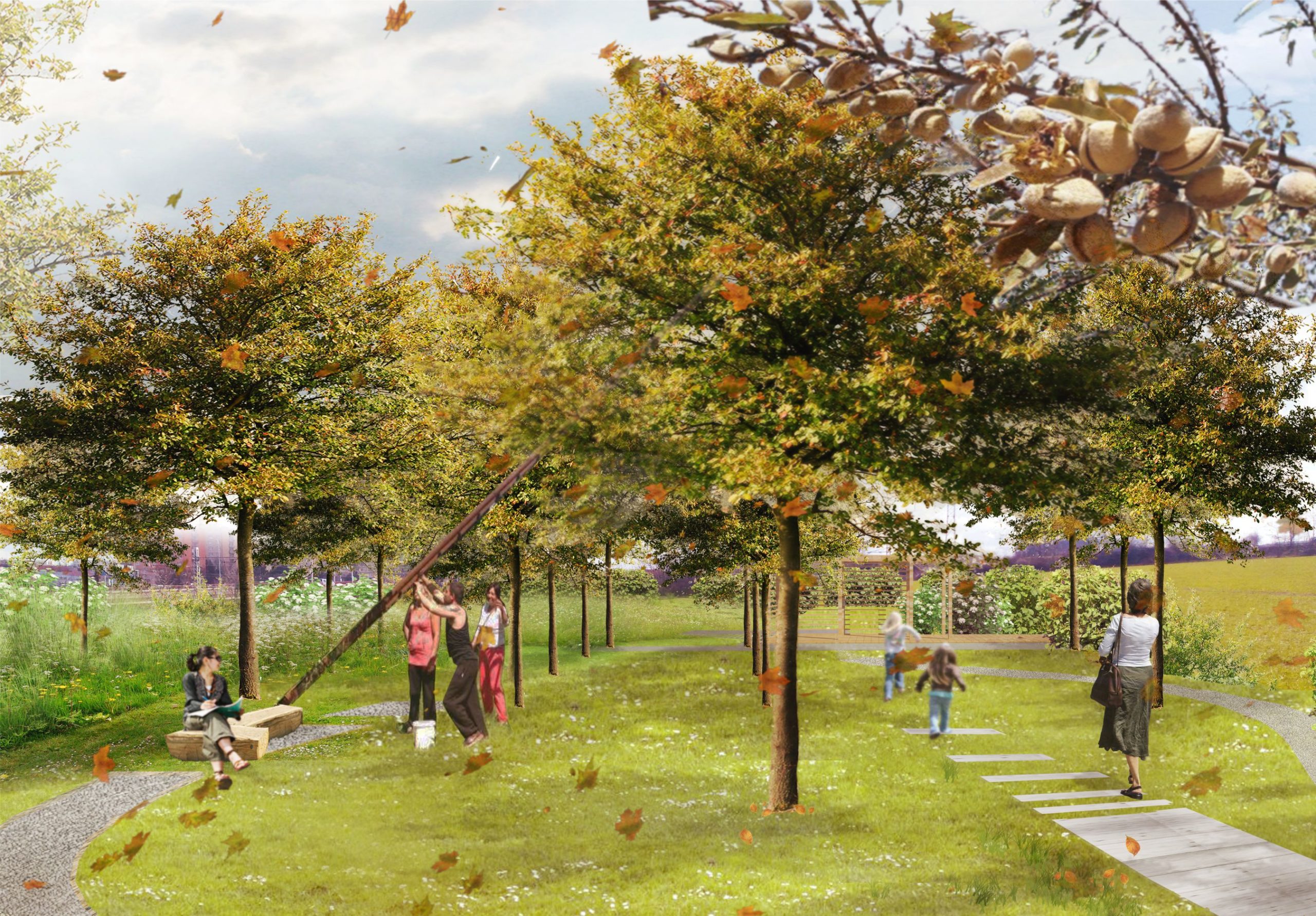 Proluka je momentálně zarostlá trávou a nevybízí k trávení volného času. Navrhovaný ovocný sad promění prostor v místo k setkávání. Návštěvníci se budou moci seznámit s různými druhy ovocných stromů a keřů i jejich údržbou a ochutnat různé jedlé plody. Stromy a keře také přilákají do tohoto prostoru motýly a ptáky.