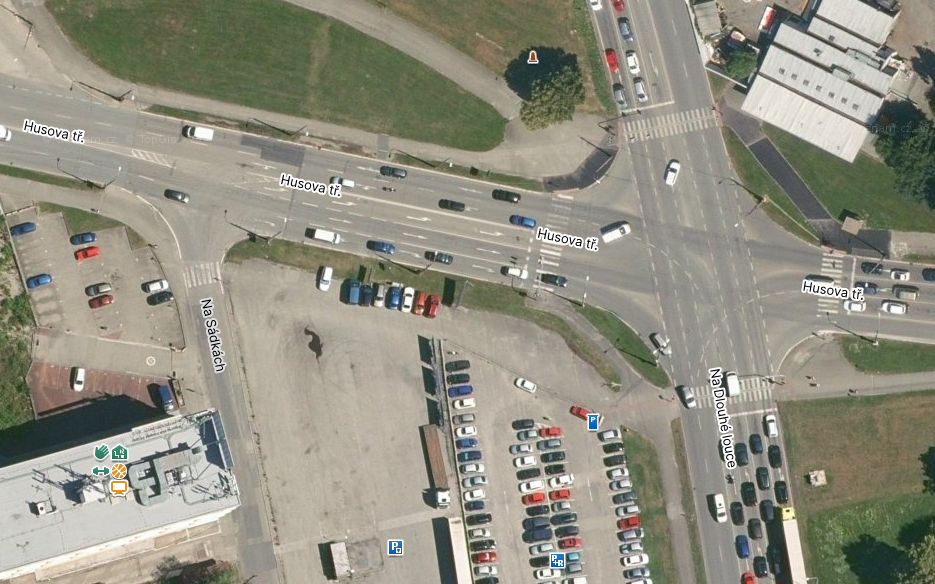 Řidiči jedoucí ulicí Na Sádkách ve směru od Kauflandu k Husově ulici respektují pouze značku "Dej přednost v jízdě!", takže mohou pokračovat přejetím dalších pruhů směr most, vlevo směr Tesco, ale i vlevo do dalších pruhů směrem ke Globusu. Doporučuji osazení dopravní značky ”Příkazný směr jízdy vpravo" se zachováním stávající dopravní značky “Dej přednost v jízdě!“.