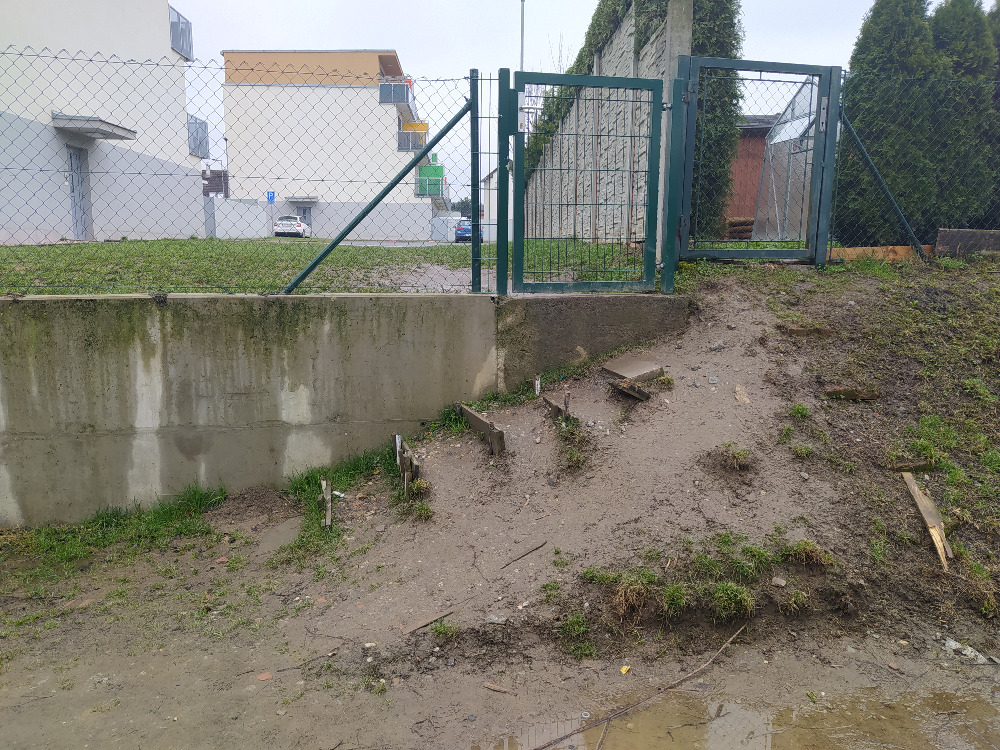 Výstavba jednoduchých schůdků (např. betonových, popř. dlážděných) z kamínkové stezky v Suchém Vrbném k veřejné brance vedoucí do obytné zóny.